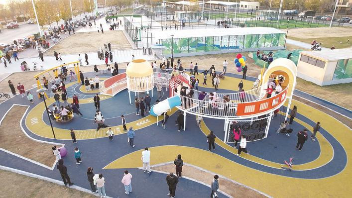 洺湖生态运动广场由武安市城发集团投资建设,位于滨湖路与桥南街西北角,总占地面积约66.6亩。目前,所有运动场地及亲子游玩区均已免费向公众开放。开放以来,每日吸引大量市民前来:球场上活跃着运动青年的身影,儿童乐园里洋溢着家庭欢笑声,全民健身区则常见老年市民舒展锻炼,形成一道充满活力的城市风景线。