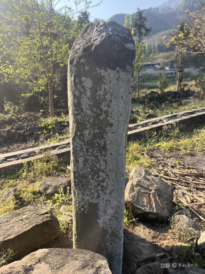 册亨县冗渡镇岜磨村者冲寨西面路边,立有一通石碑,圆首,砂石质,高1.9米,宽0.78米,厚0.23米。这通石碑除正反两面刻字,还模仿四棱碑在两侧面刻字,因石碑为砂石质,风化严重,两侧面字迹较为模糊。